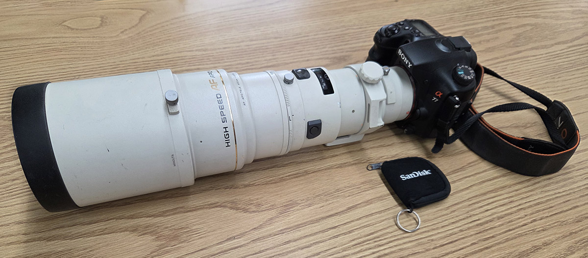 For Auction: A 400mm F4.5 Minolta lens and matching Sony A77 Digital Camera comes with luggage style lens case and extra film card. Also to auction a GoPro Hero 9 camera outfit.